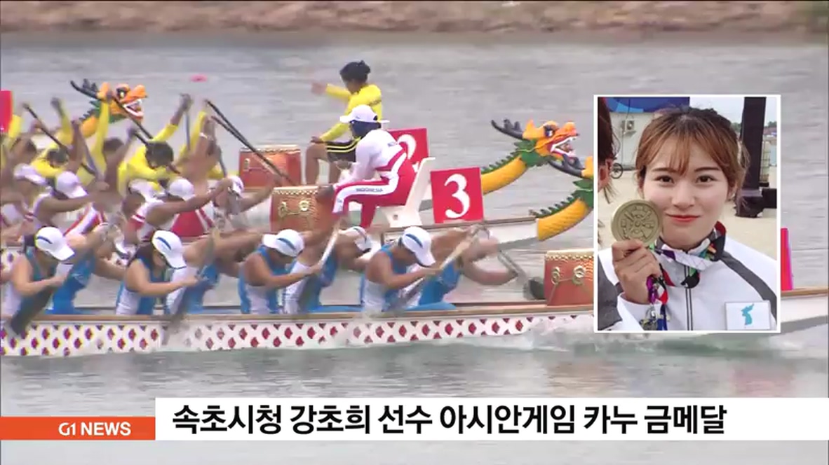 속초시청 카누팀 소속 강초희 선수가 2018 자카르타·팔렘방 아시안게임에서 금메달을 획득했습니다.