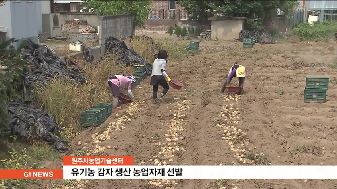원주시농업기술센터와 국립농업과학원은 학교급식 등 안전한 유기농 감자 수요 등에 대처하기 위해, 유기농 감자 재배에 활용할 유기농업자재 선발 시험 연구를 벌입니다.