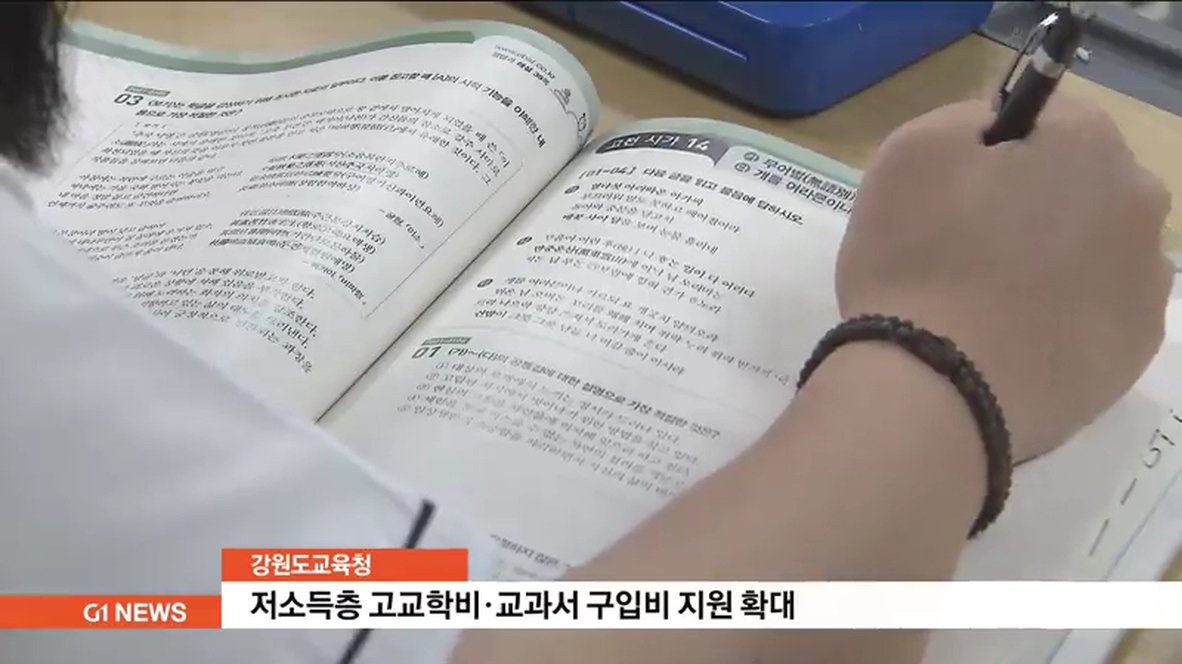 강원도교육청는 지난 3월 보건복지부로부터 지원범위 확대에 대한 타당성을 인정받아, 저소득층 가정 학생들을 위한 고교 학비와 교과서 구입비 지원 범위를 확대했다고 밝혔습니다.