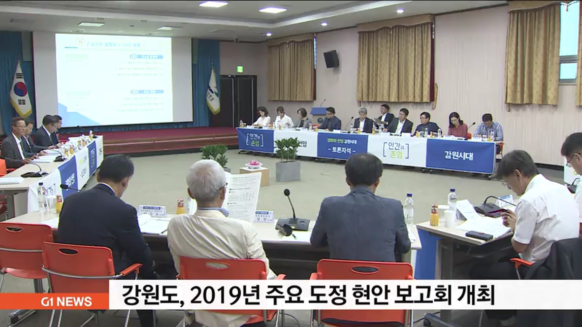 강원도는 도청 신관 대회의실에서 실국 관계자들이 참석한 가운데, '평화와 번영의 강원시대'를 열기 위한 2019년도 테마별 주요 도정 보고회를 가졌습니다.