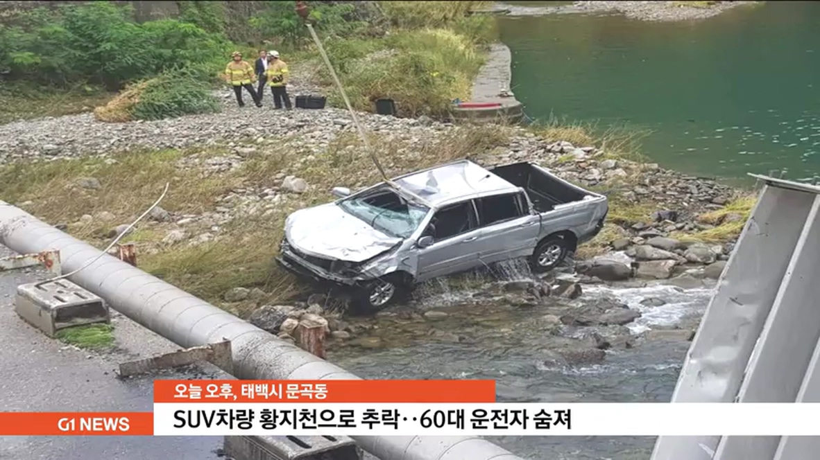태백서 SUV차량 황지천으로 추락..60대 운전자 숨져