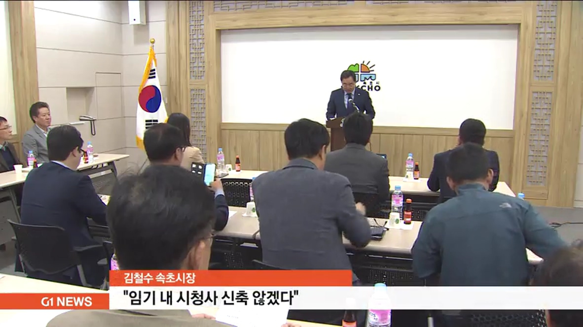 김철수 속초시장이 임기 중 시청사 신축을 추진하지 않겠다는 뜻을 밝혔습니다.
