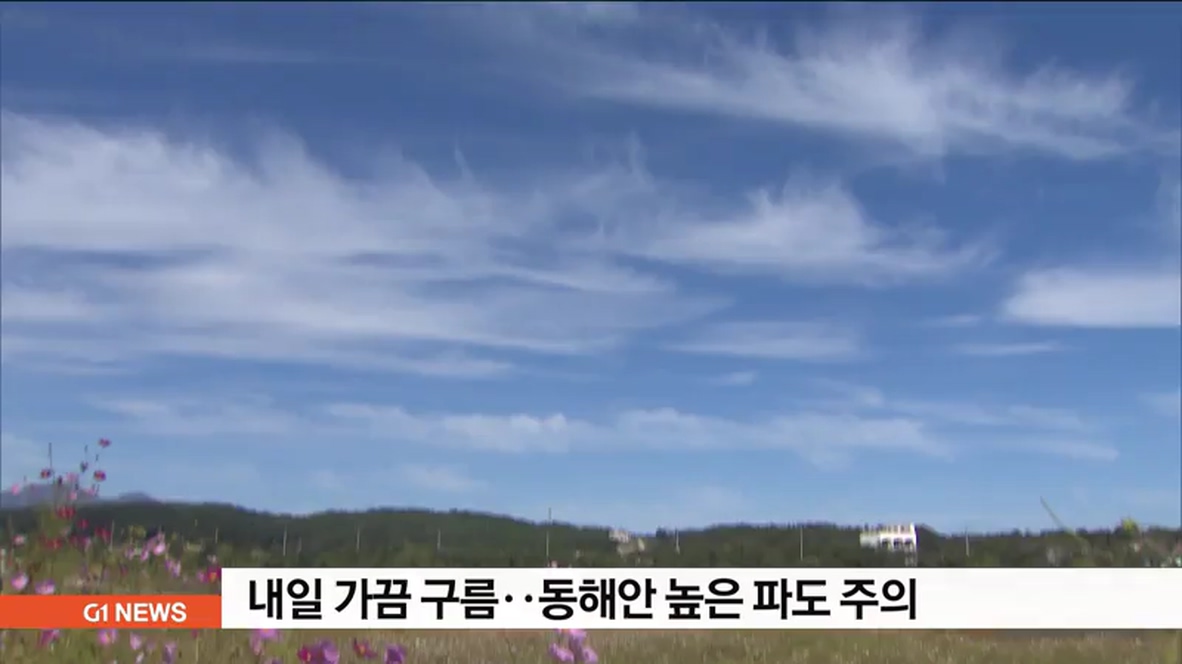 내일 가끔 구름 많음.. 동해안 높은 파도 주의