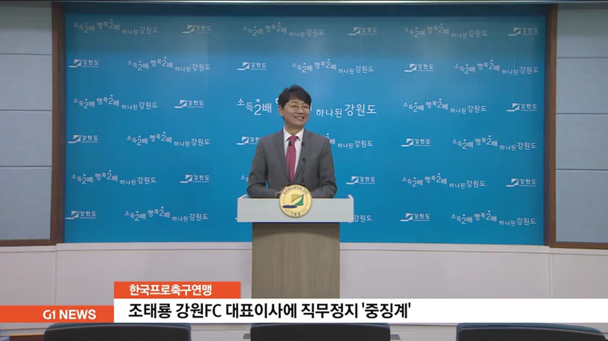 연맹은 어제(15일) 열린 제17차 상벌위에서 "조태룡 대표가 구단 대표이사 지위를 남용해 사익을 추구하고, 구단을 정치에 관여시키는 등 비위행위를 저질렀다"며 조 대표에게 자격정지 2년 징계를 내리고, 강원 구단에는 제재금 5천만원을 부과한다고 밝혔습니다.