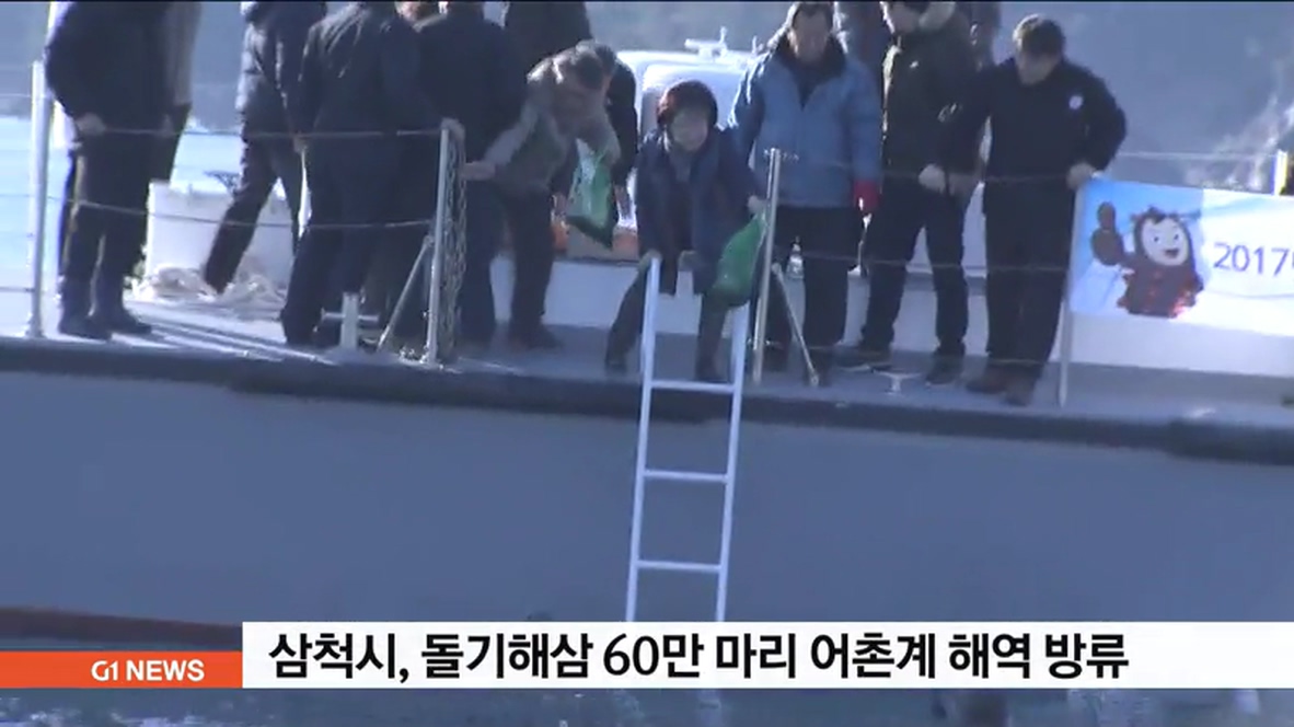 삼척시가 올해 인공 생산한 어린 돌기해삼 60만 마리를 다음달 23일까지 지역의 어촌 마을해역 5곳에 무상 방류합니다.