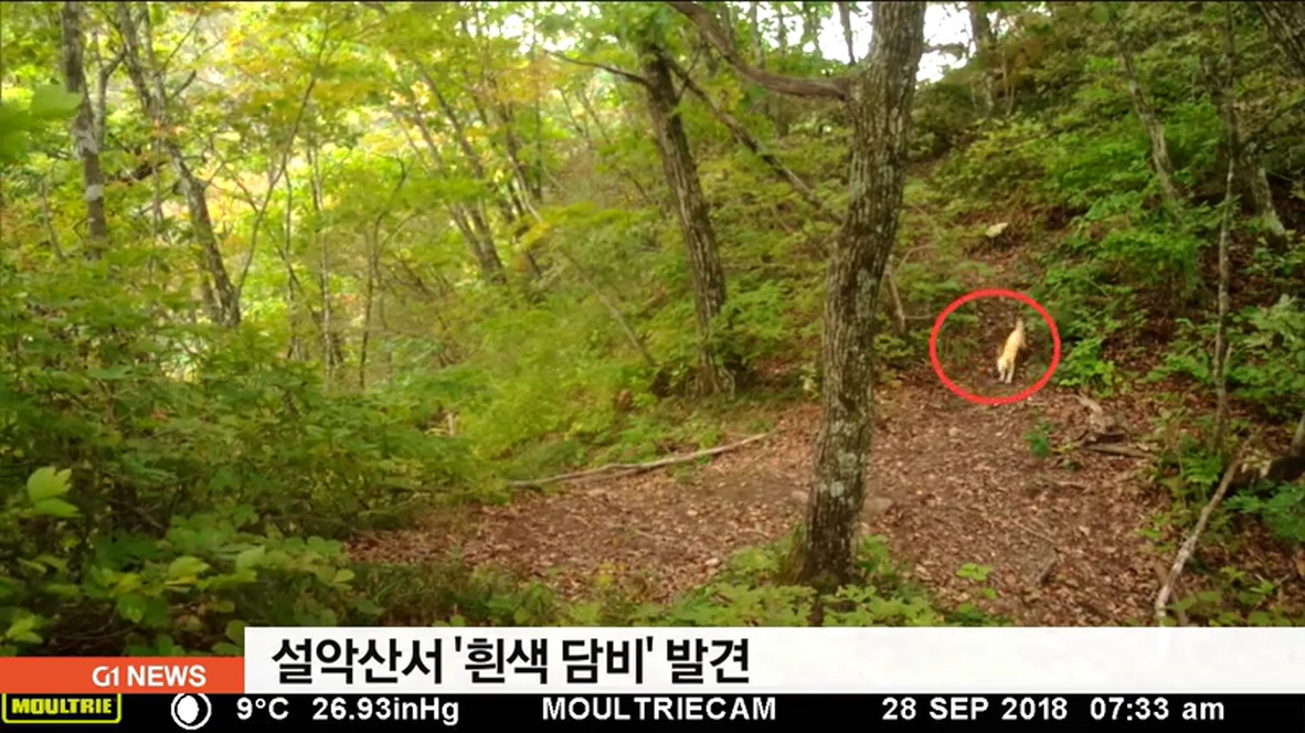 국립공원관리공단 설악산국립공원사무소는 야생동물 모니터링을 위해 설치한 무인센서카메라에 알비노 담비가 2마리의 담비와 함께 무리를 지어 이동하는 모습이 포착됐다고 밝혔습니다.