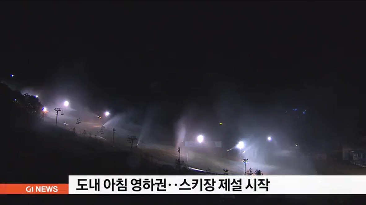 설악산 중청의 아침 기온이 영하 8도까지 떨어지는 등 도내 곳곳의 수은주가 영하권으로 떨어지면서, 도내 스키장들이 제설 작업에 들어갔습니다.