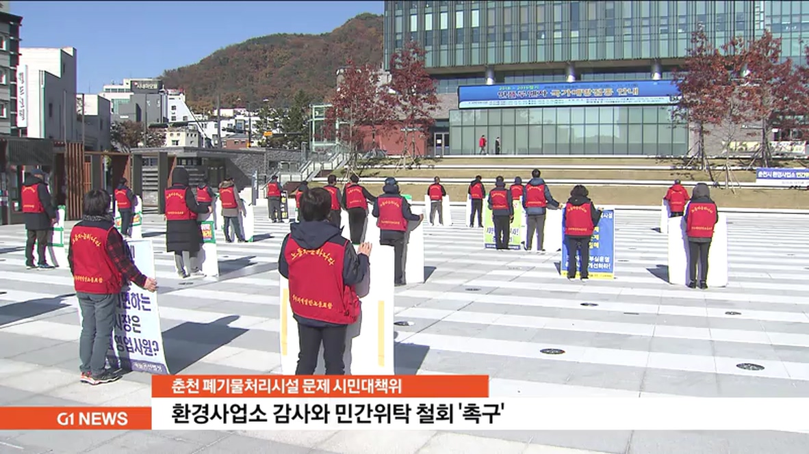대책위는 "이재수 춘천시장이 지난 9월 환경사업소 민간 위탁업체 근로자들의 고용승계 과정에 절차상 문제가 있었다며 사과했지만, 아직도 감사에 착수하지 않고 있다"며, "환경사업소 문제 해결을 위해선 신속한 감사는 물론, 민간위탁 운영을 철회하고, 시가 직접 운영해야 한다'고 주장했습니다.