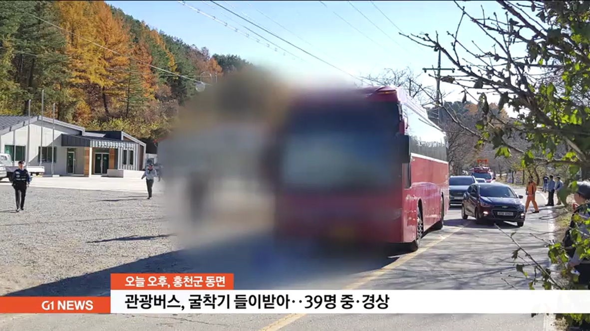 관광버스, 굴착기 들이받아..39명 중.경상