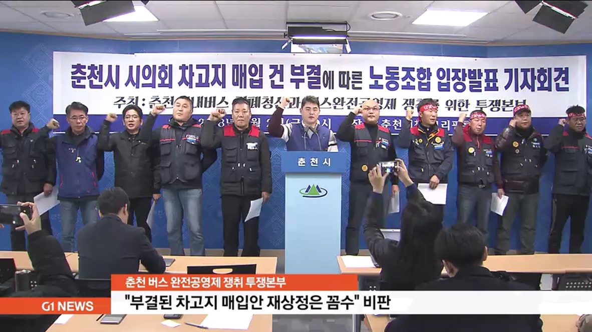 투쟁본부는 "춘천시의회의 버스 차고지 매입안 부결로 녹색시민협동조합의 대동.대한운수 인수 작업이 불투명해진 상황에서, 의회 동의도 얻지 못한 차고지 매입안을 의회에 재상정하는 꼼수를 부릴 것이 아니라, 이제라도 버스 완전공영제 도입을 위한 준비 작업에 들어가야 한다"고 주장했습니다.