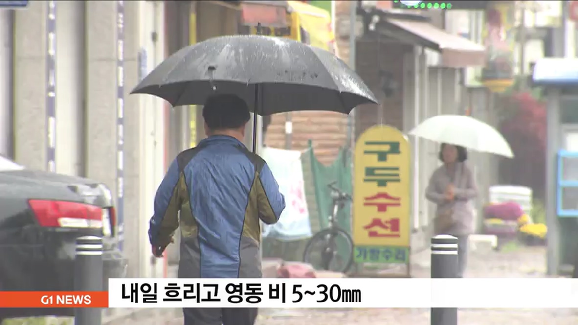 내일 영서지역은 대체로 맑다가 저녁부터 구름 많아지겠고, 영동은 흐리고 가끔 비가 내리겠습니다.