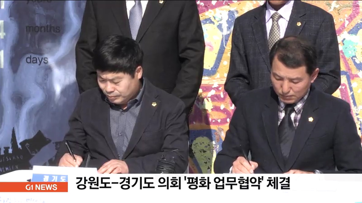 강원도의회와 경기도의회는 오늘 경기도 파주에 있는 도라산 역에서 남북교류사업 협력과 DMZ 공동개발을 위한 '평화 업무협약'을 체결했습니다.