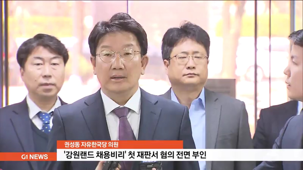 강원랜드 채용과정에서 영향력을 행사한 혐의로 기소된 자유한국당 권성동 의원에 대한 첫 재판이 열렸습니다.