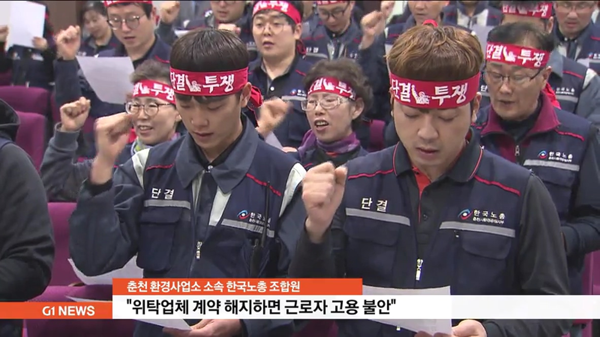 한국노총 춘천시 환경사업소지부는 오늘 신동면 혈동리 환경사업소에서 기자회견을 열고, '춘천시가 환경사업소 소속 근로자들의 처우를 개선하기는 커녕, 어떠한 협의 과정도 없이 민간 위탁 업체와의 계약 해지 등을 검토하며 근로자들의 고용 불안만 부추기고 있다'고 주장했습니다.