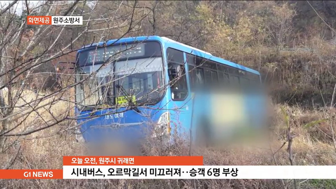 원주서 시내버스 풀숲에 미끄러져..6명 부상