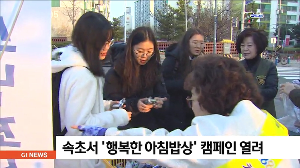 속초 설향로터리클럽과 속초 청소년복지상담센터, 1388 청소년지원단은 오늘 속초중학교 입구에서 '행복한 아침밥상' 캠페인을 가졌습니다.