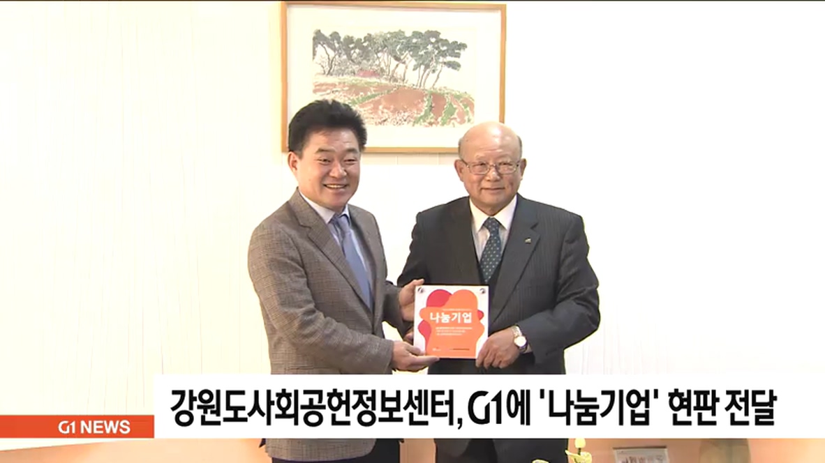 강원도사회공헌정보센터는 오늘, G1 강원민방 허인구 대표이사에게 '나눔기업' 현판을 전달했습니다.