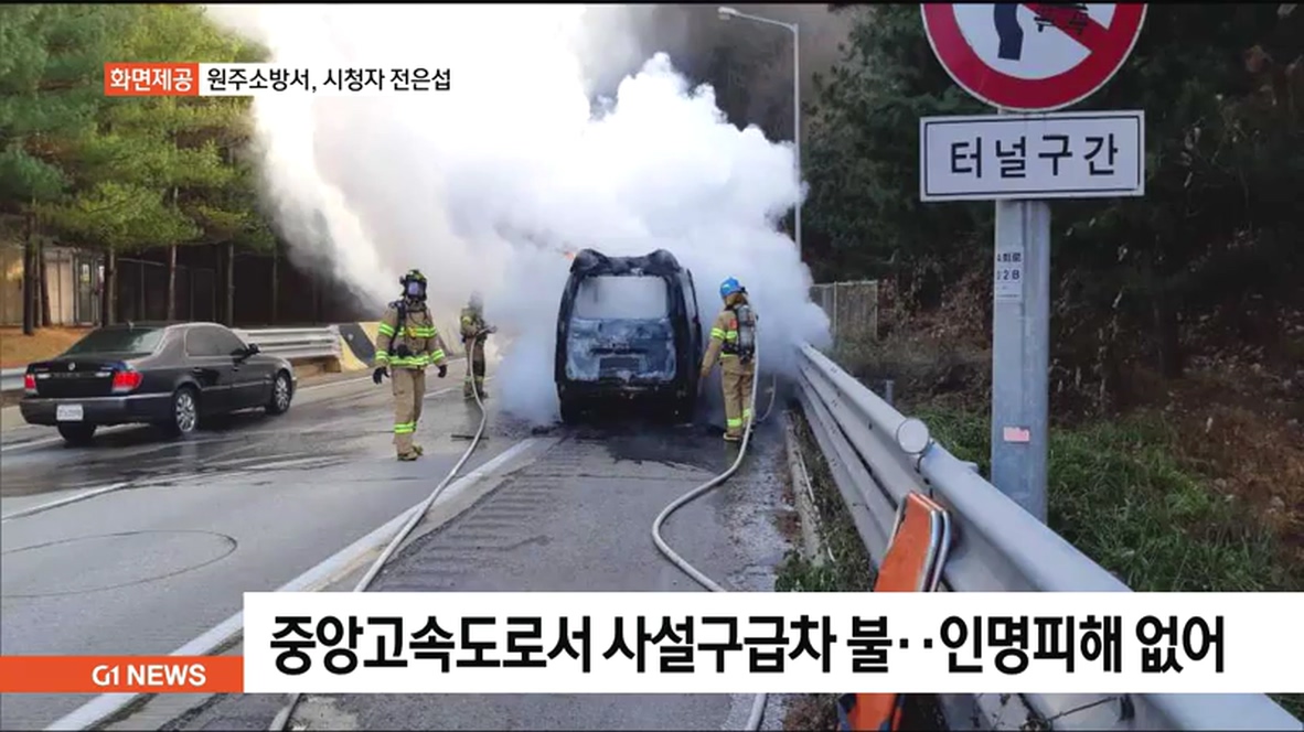 오늘 오후 2시 40분쯤 원주시 호저면 중앙고속도로 부산방면 만종터널 부근에서 사설구급차량에 불이 나, 20여분 만에 꺼졌습니다.