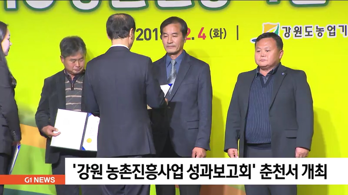 올 한해 도내 농업연구개발과 기술보급사업을 평가하고, 농촌지역의 발전 방안을 모색하는 '2018년 강원 농촌진흥사업 성과보고회'가 오늘(4일) 춘천에서 열렸습니다.