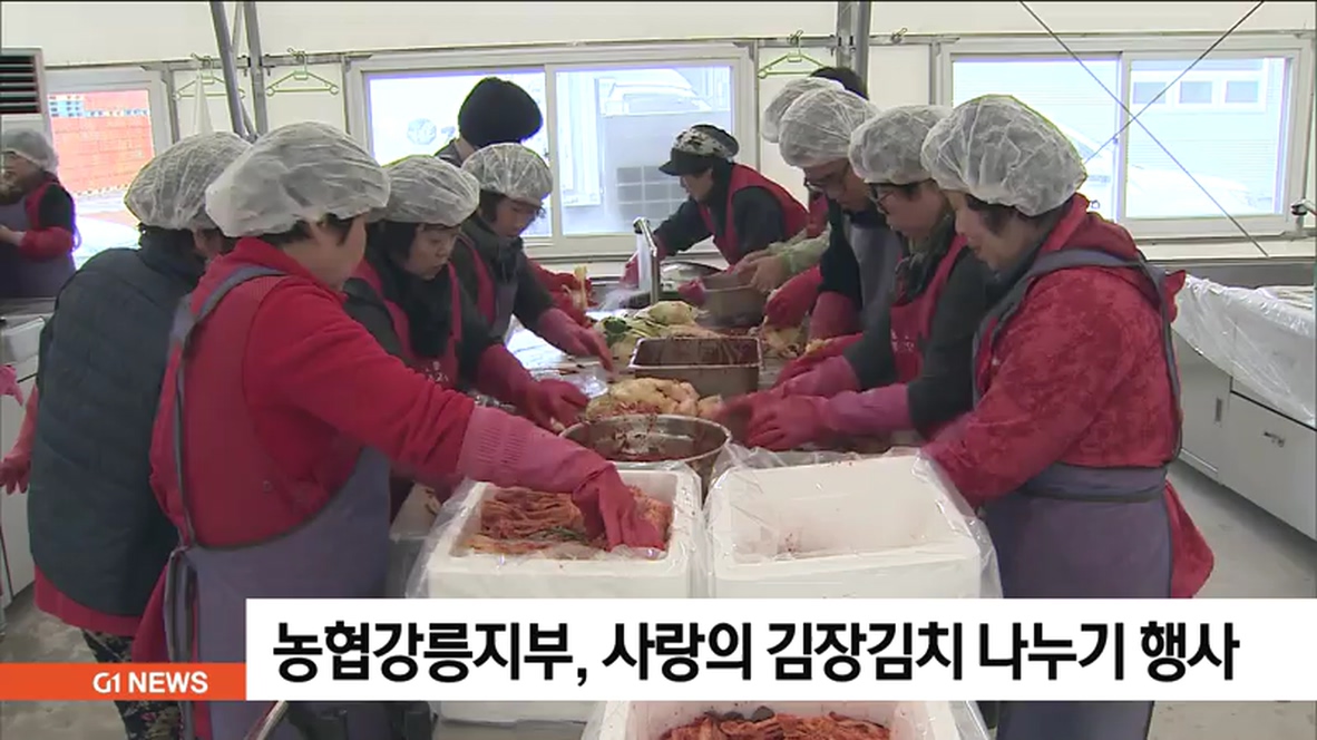 소외계층을 위한 김장김치나누기 온정이 이어지고 있는 가운데, 농협강릉지부가 농산물유통센터 김치체험장에서 사랑의 김장김치 나누기 행사를 가졌습니다.