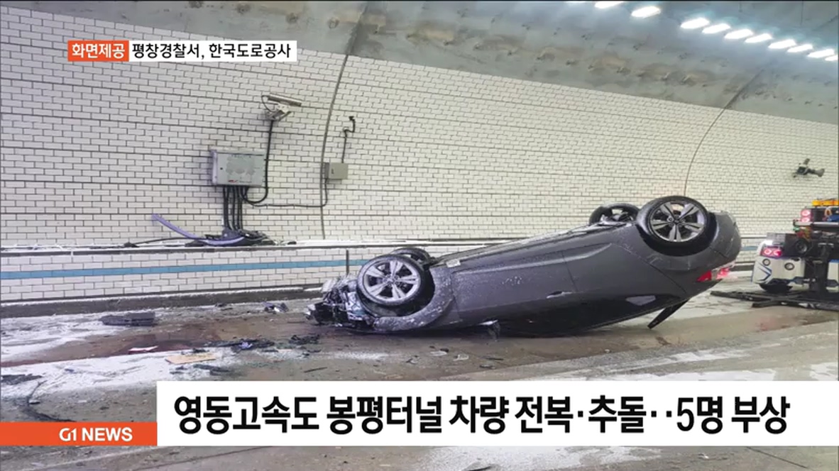영동고속도 봉평터널 차량 전복.추돌..4명 부상