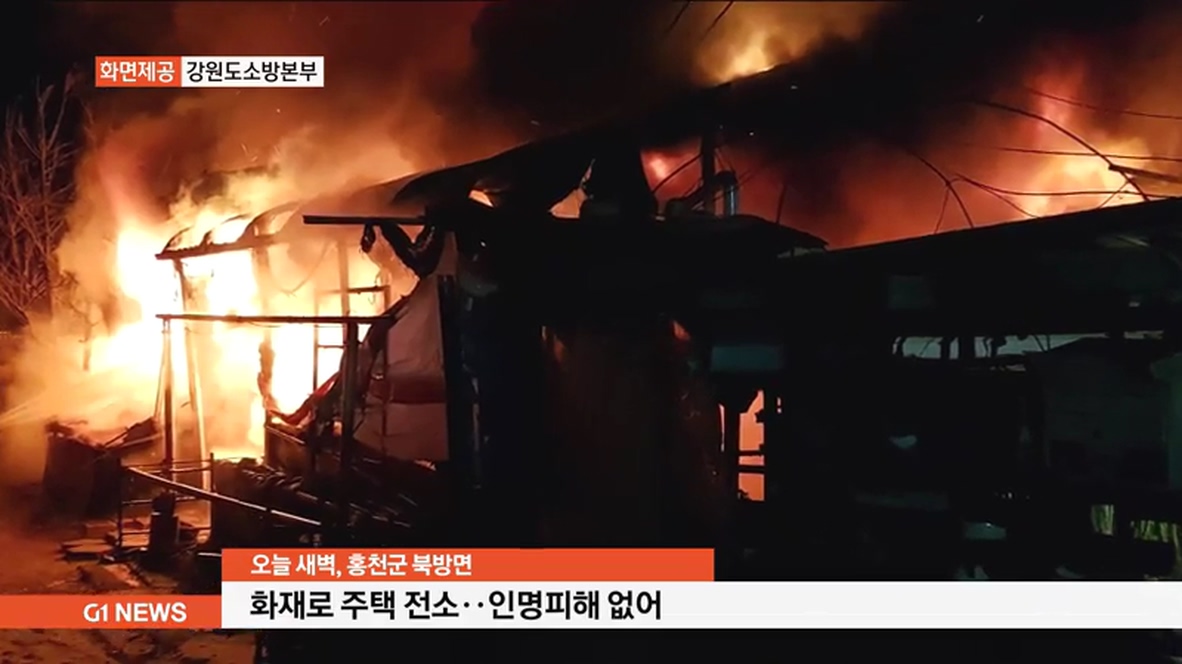 오늘 새벽 4시 40분쯤, 홍천군 북방면 화계리의 한 주택에서 불이 났습니다.