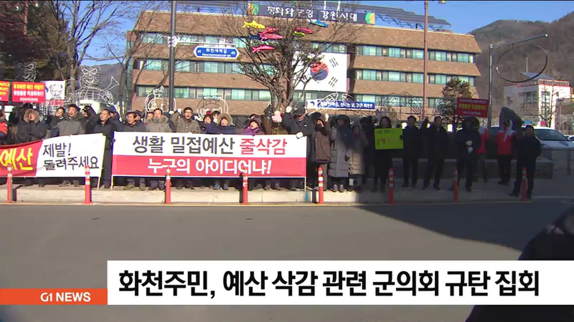 오늘 오후 화천지역 주민 100여명은 화천군의회 앞에서 집회를 열고, 예산을 삭감한 군의회에 대해 "주민들과 소통도 없이 내린 26건의 예산 감액결정을 철회하고 모든 사업비를 즉각 복원하라"고 촉구했습니다.