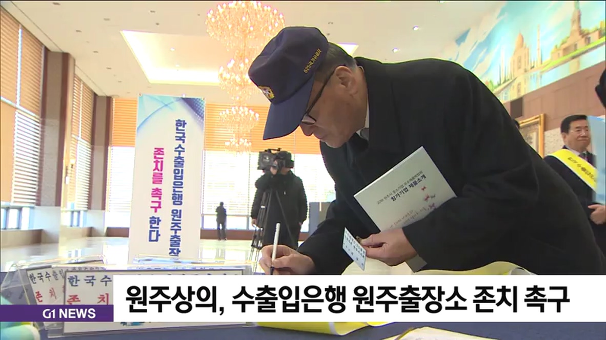 원주상공회의소가 한국수출입은행 원주 출장소의 존치를 촉구하는 서명운동에 나섰습니다.