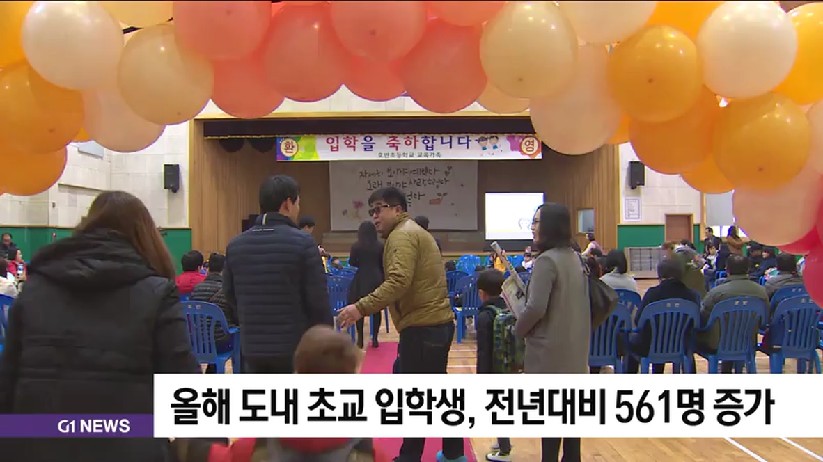 올해 도내 초교 입학생, 전년대비 561명 증가