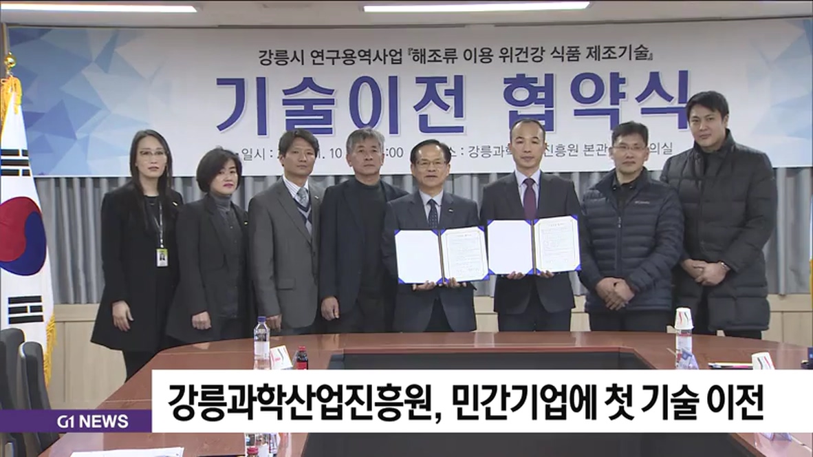 강릉시 산하 연구기관인 강릉과학산업진흥원이 향토자원을 이용해 자체 개발한 기술을 처음으로 민간기업에 이전하는 협약식을 개최했습니다.