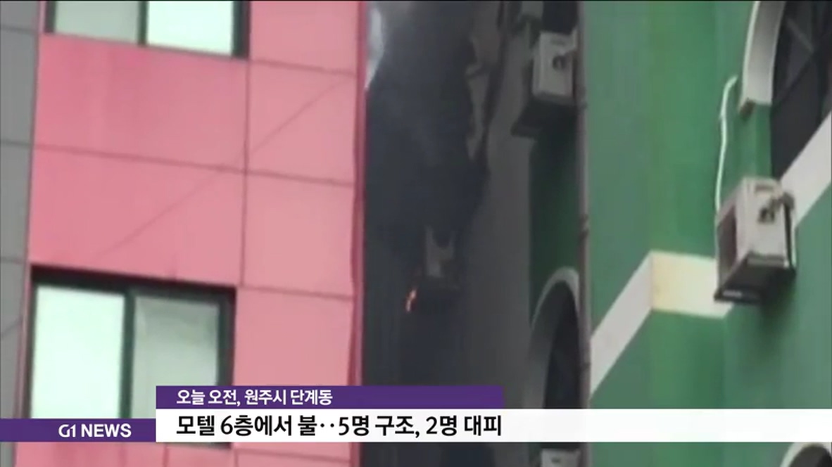 원주 모텔 6층에서 불.. 5명 구조, 2명 대피