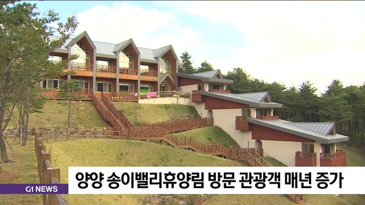 양양군에 따르면, 2012년 개장 이후 송이밸리자연휴양림을 찾은 누적 관광객은 18만3천명으로, 2015년 2만4천명, 2018년 5만7천명으로 매년 증가하고 있습니다.