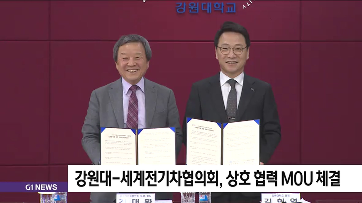 강원대와 세계전기차협의회가 상호 협력에 관한 양해 각서를 체결했습니다.