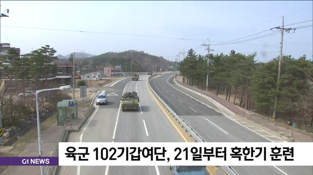 육군 102 기갑여단은 오는 21일부터 닷새동안 속초와 고성, 양양 3개 시·군에서 혹한기 훈련을 실시한다고 밝혔습니다.