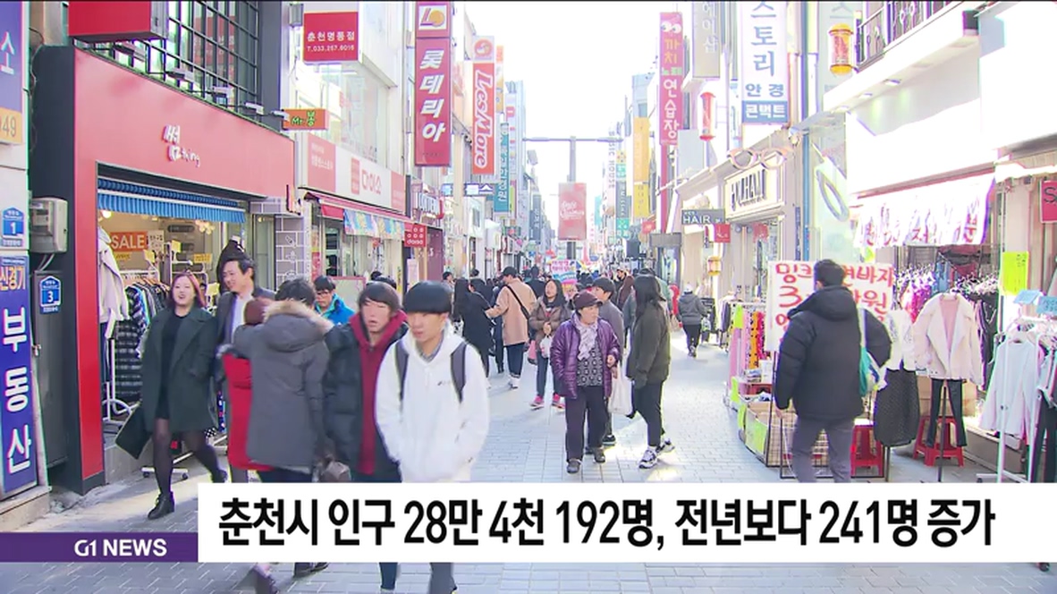 춘천시가 최근 발표한 '춘천시 사회조사 보고서'에 따르면, 지난해 기준 춘천시 인구는 28만 4천 192명으로, 28만 3천 951명이었던 전년보다 241명 증가했습니다.