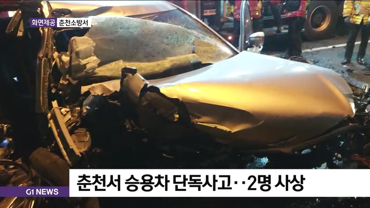 춘천 경춘국도서 승용차 단독사고..2명 사상