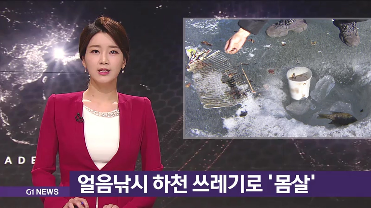 겨울철 얼음낚시터의 비양심이 하천 오염을 악화시키고 있습니다.