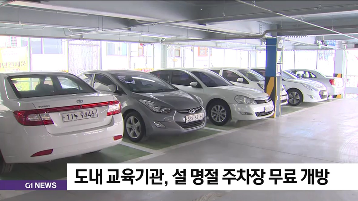설 연휴 기간 도내 교육기관과 일선 학교 등의 주차장이 무료로 개방됩니다.