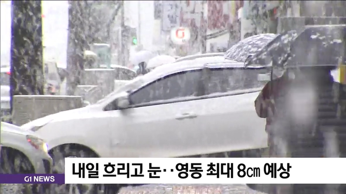 눈의 양은 영서지역이 1cm 내외, 영동지역은 3cm에서 최대 8cm까지 예상됩니다.