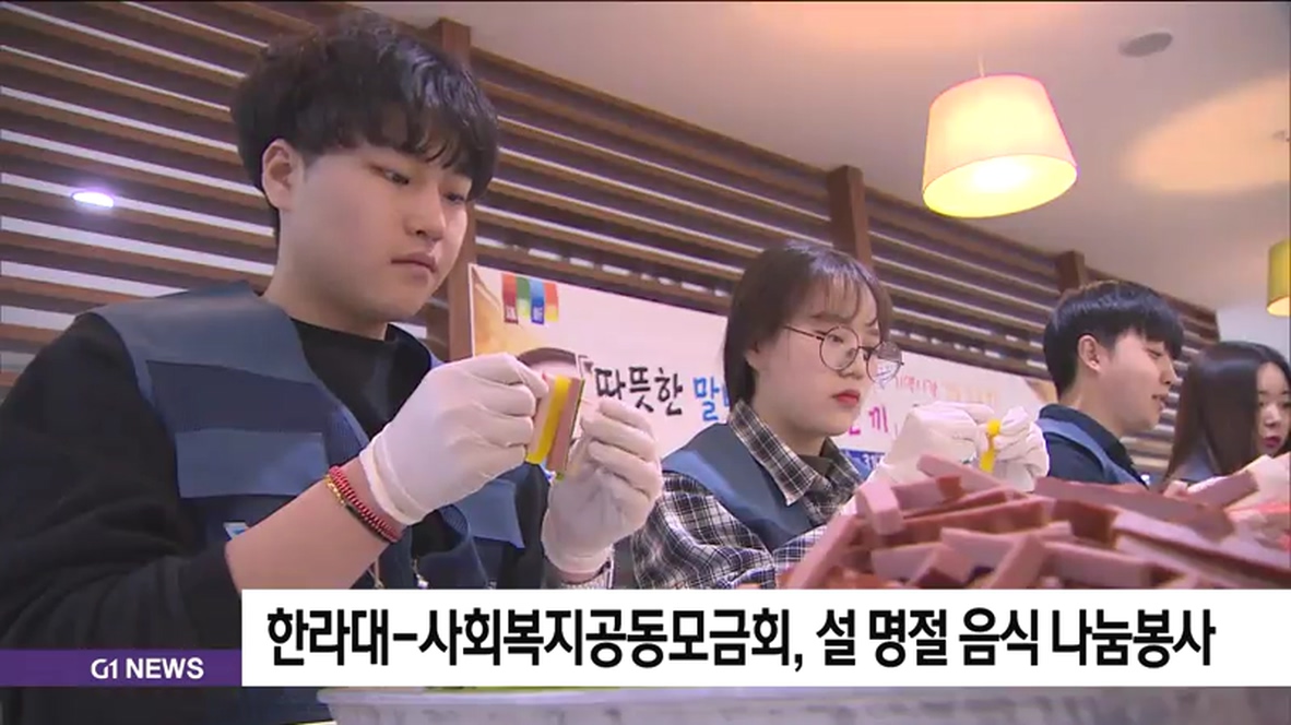 한라대학교와 강원도사회복지공동모금회 등은 설 명절을 앞두고, 음식을 만들어 소외계층에 직접 전달하는 '설 명절 음식나눔' 봉사 활동을 펼쳤습니다.