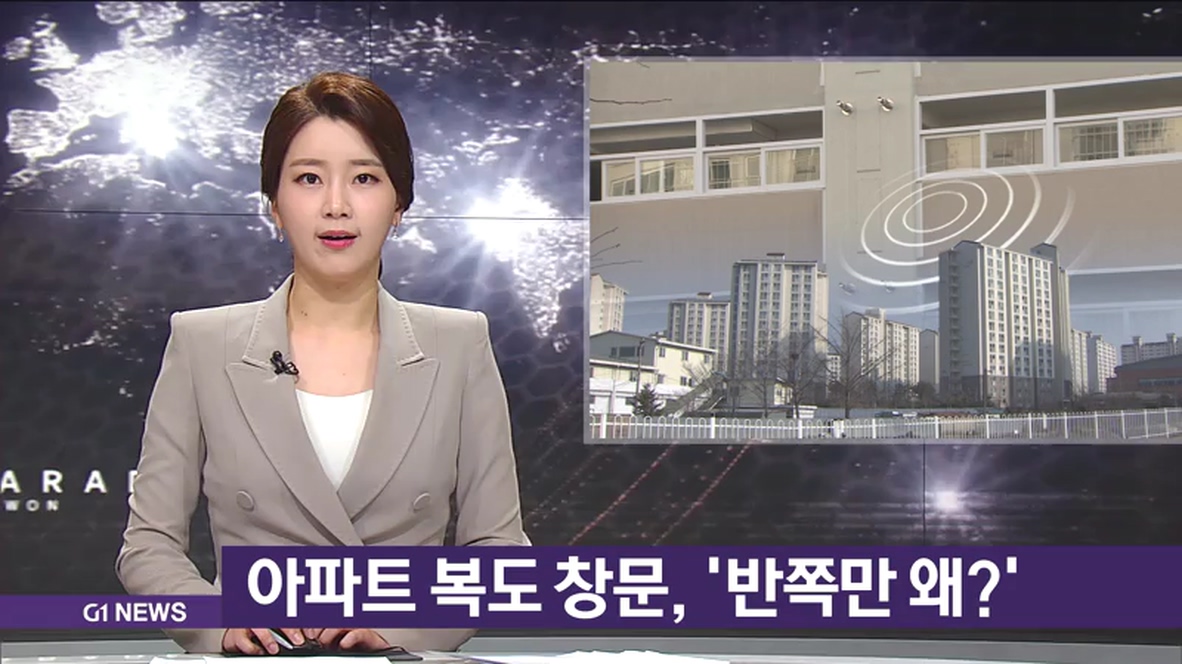 춘천의 한 복도식 아파트에 복도 창문이 설치됐는데, 창문 윗부분이 뻥 뚫려 있습니다.