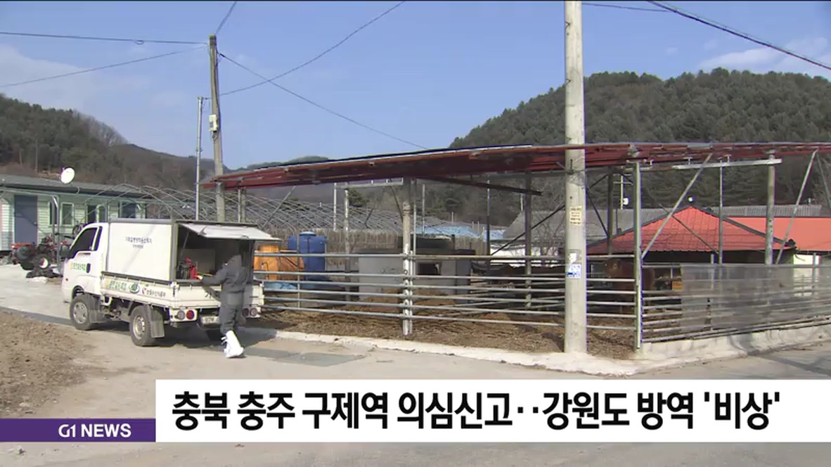 강원도와 방역당국은 구제역이 발생한 충주 경계인 원주 부론면과 귀래면 주요도로에 통제초소 2개소를 추가 설치하고, 원주 전체 우제류 사육농가와 축산시설을 일제소독 하는 등 구제역 유입 방지에 총력을 쏟고 있습니다.
