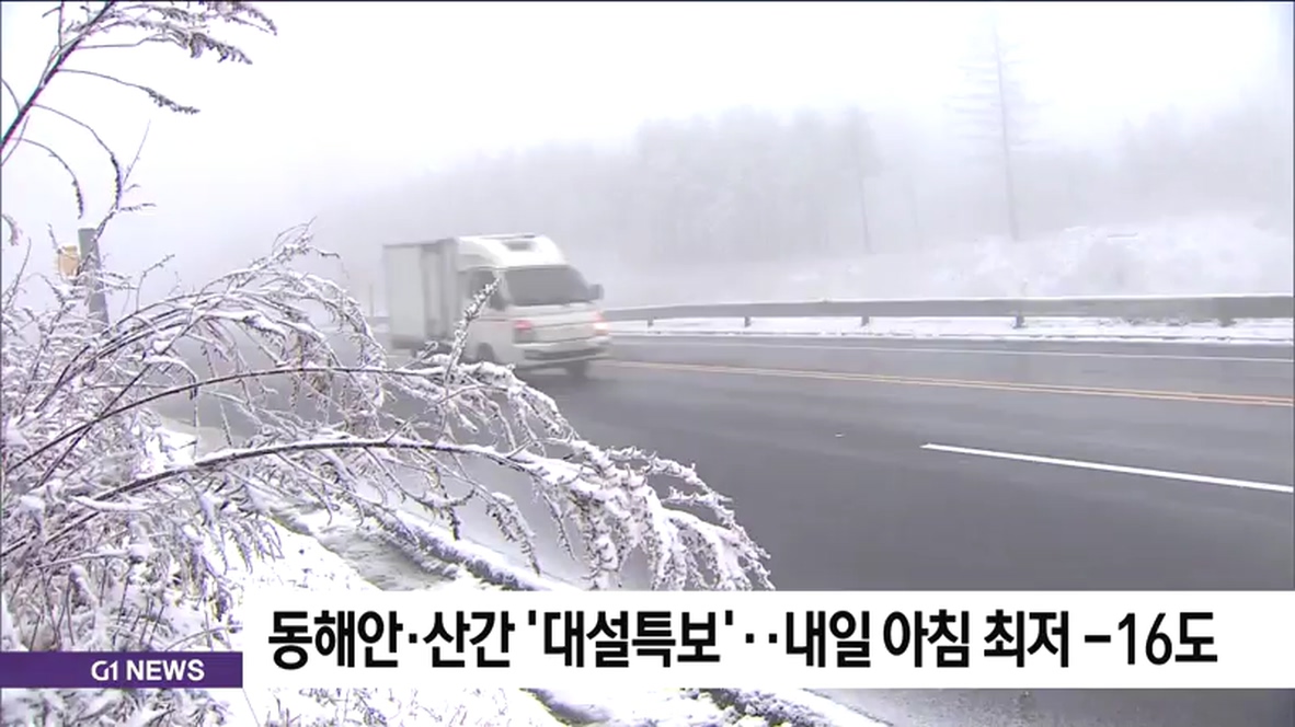 동해안.산간 '대설특보'..내일 아침 최저 -16도