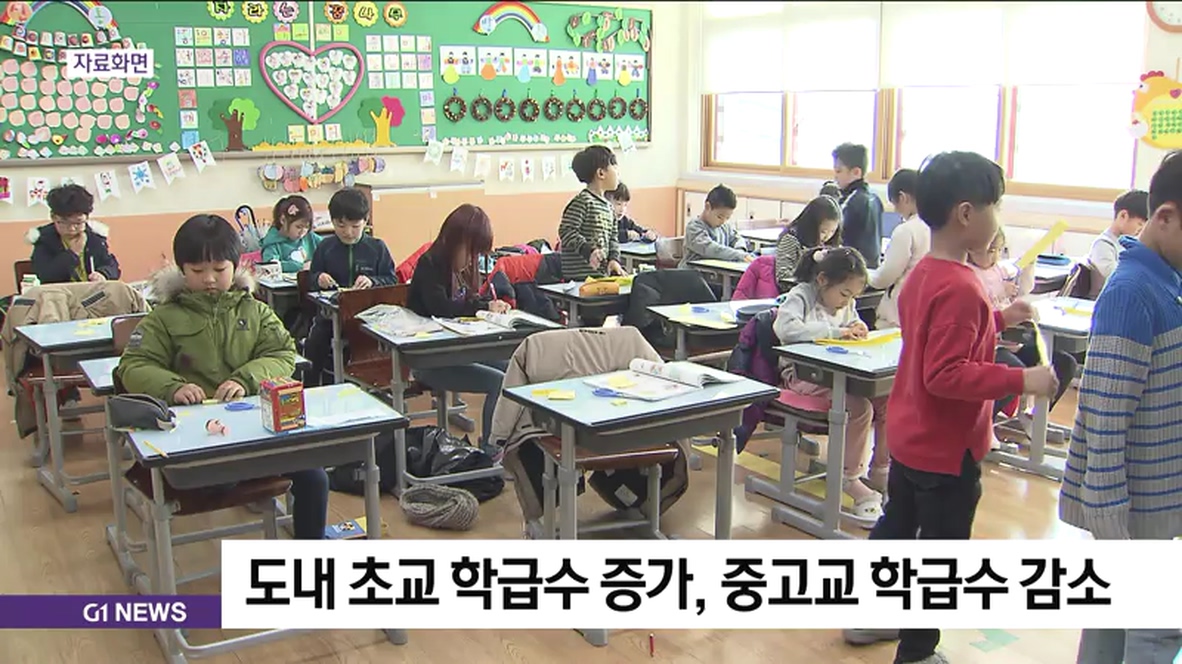 도교육청에 따르면 올해 도내 초등학교는 지난해보다 21학급이 늘어난 4천 292학급이며, 중학교는 26학급이 줄어든 천 708학급, 고등학교도 20학급이 줄어든 천 867학급으로 확정됐습니다.