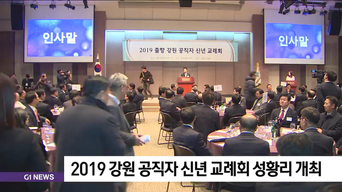 강원도 출신 공직자와 출향 인사 등이 한자리에 모여 '새로운 강원'을 위해 인적 네트워크를 다지는 '2019 강원 공직자 신년 교례회'가 어제 저녁, 한국프레스센터에서 개최됐습니다.