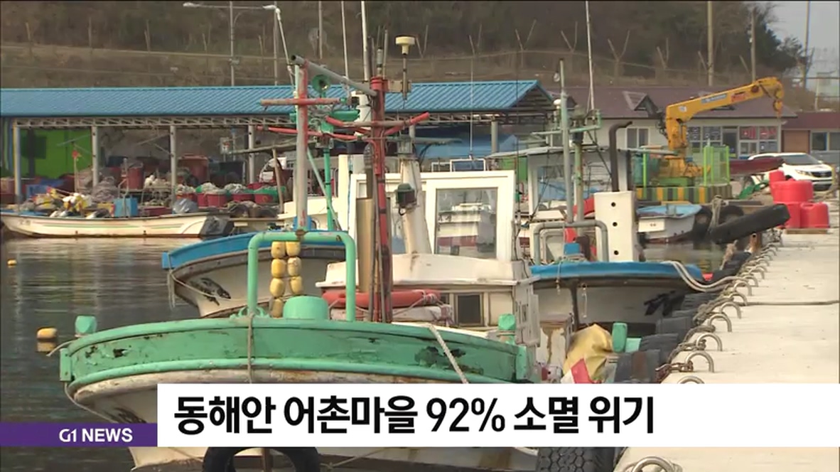 강원연구원이 최근 발표한 자료에 따르면, 도내 강릉과 속초, 동해 등 동해안 6개 시군 68개 어촌마을의 92%가 소멸위험지수 0.5 이하인 것으로 조사됐습니다.