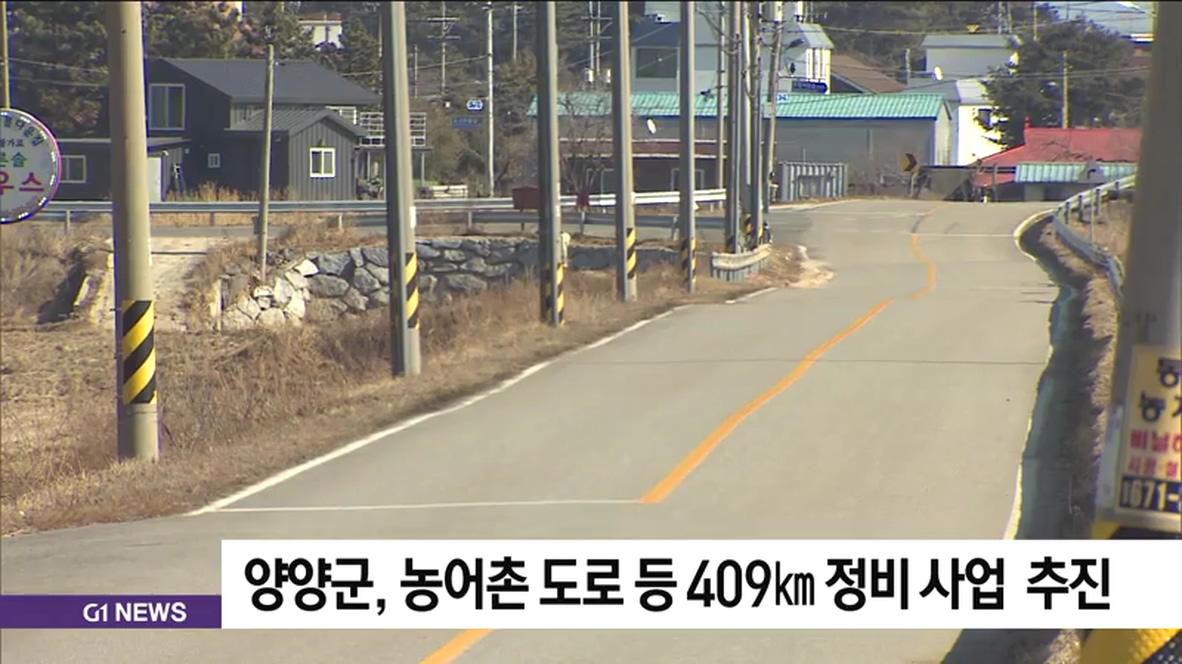 양양군은 오는 2029년 완공을 목표로 하는 군도 9개 노선과 농어촌도로 63개 노선 409km에 대한 정비계획을 수립한다고 밝혔습니다.