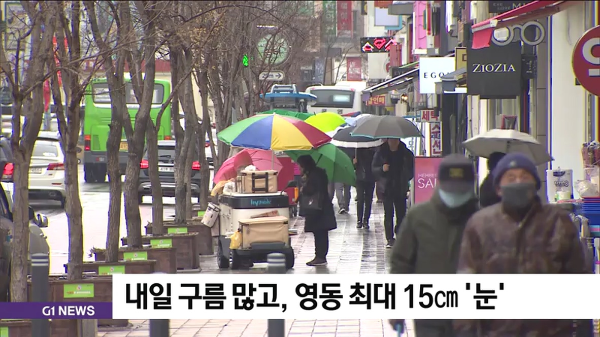 내일 구름 많고, 영동 최대 15㎝ '눈'
