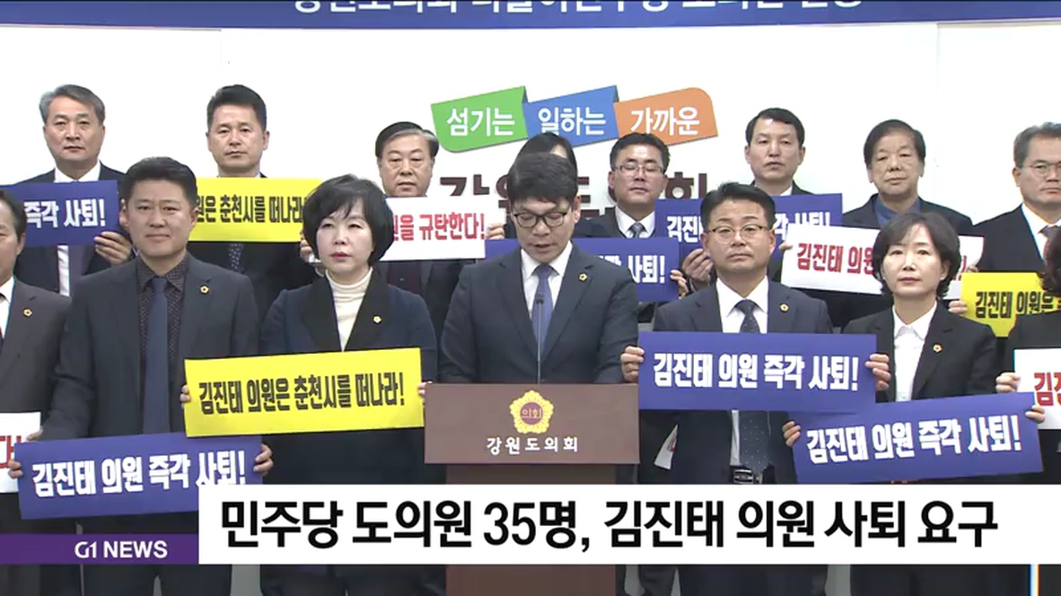 민주당 도의원 35명, 김진태 사퇴 촉구 성명