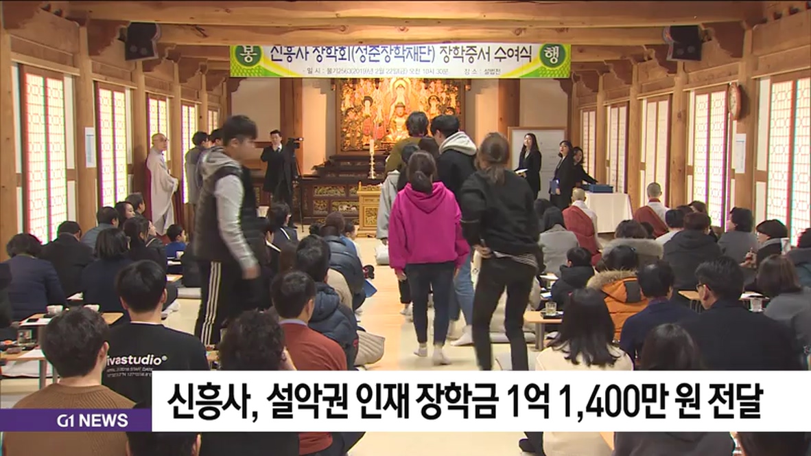 신흥사 장학회 성준장학재단은 오늘(22일) 지역 초등학생과 대학생 45명에게 장학증서를 전달하고, 한 학기동안 모두 1억천400만원을 지원하기로 했습니다.